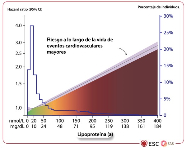 Los estudios epidemiológicos y genéticos respaldan de manera sólida una asociación probablemente causal y continua entre niveles plasmáticos elevados de Lp(a) y mayor riesgo de enfermedad cardiovascular aterosclerótica (ASCVD) y estenosis de la válvula aórtica (AVA). Datos emergentes sugieren que una Lp(a) elevada puede conferir un mayor riesgo de ASCVD y AVA por partícula o por contenido de colesterol que el LDL-C.