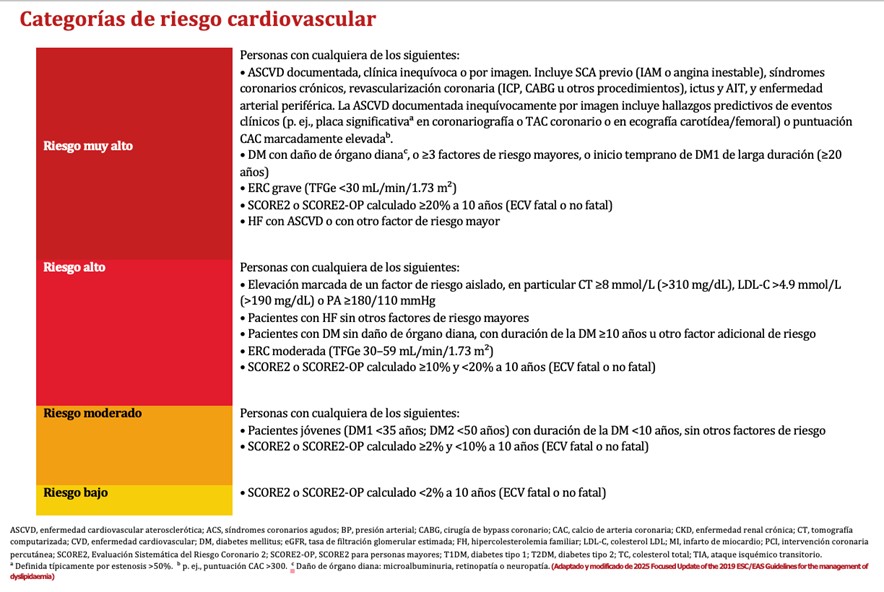 (Adaptado y modificado de 2025 Focused Update of the 2019 ESC/EAS Guidelines for the management of dyslipidaemia)